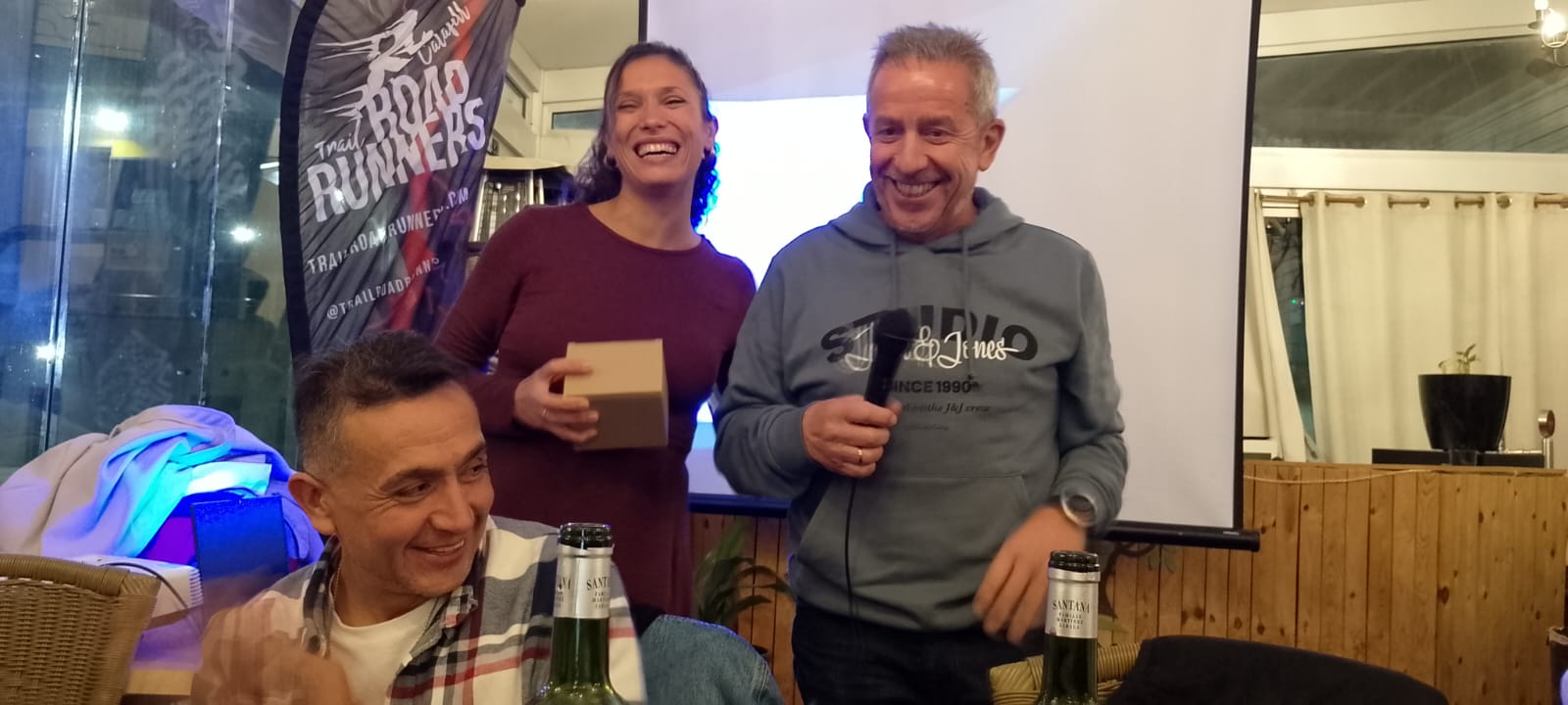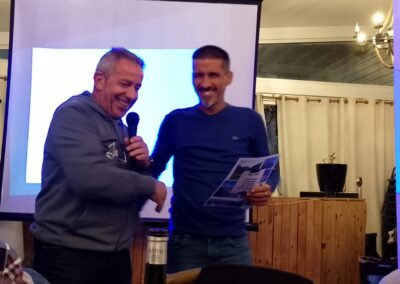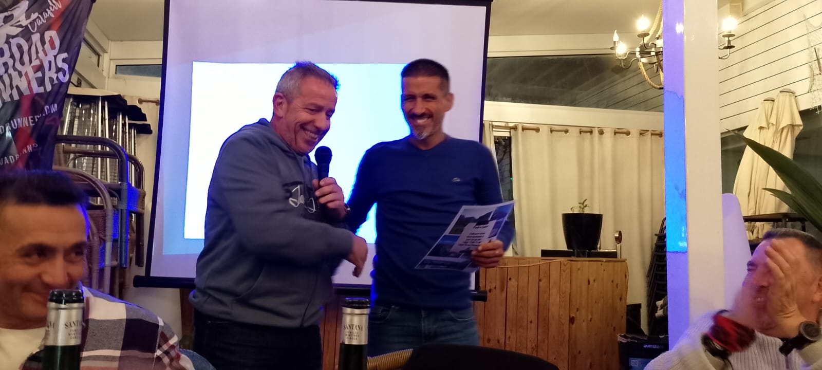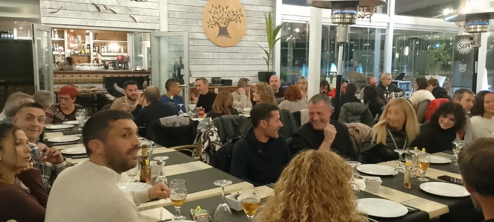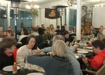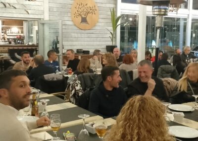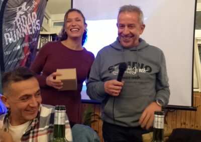 Acabada l’assemblea, ens vam traslladar al restaurant El Olivo, patrocinador del club, per celebrar el sopar anual. Va ser una nit plena de sorpreses i emocions. Els socis Carla i Lluís van cantar unes quantes cançons durant el sopar, a la veu i la guitarra; el president va donar les cèlebres tasses del club a persones que han destacat per algun fet (van recaure en el José Manuel Abascal i la Carla Astié); també es va agrair de forma especial el Pedro Salor, pel seu suport en els entrenaments; es va projectar un audiovisual amb fotografies de resum de l’any. I per acabar la festa, hi va haver l’actuació de la banda de rock The Sun Band, en exclusiva per als assistents al sopar. La cirereta del pastís va ser que tothom va ser obsequiat amb un pouch d’energia saludable de la marca Salssa, aportats per la nutricionista i companya Anna Grífols.